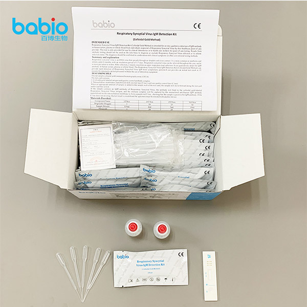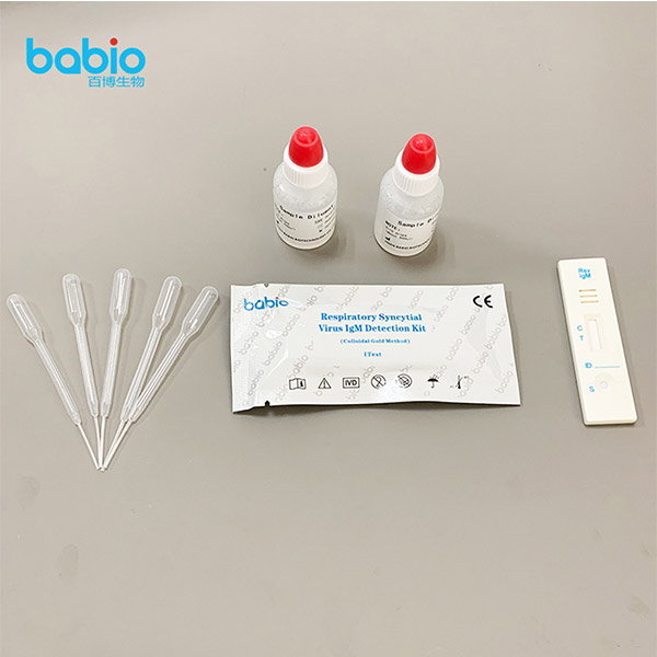 Po zakażeniu objawia się głównie infekcją górnych dróg oddechowych. Potrafi jakościowo wykryć przeciwciała IgM w ludzkiej surowicy, osoczu lub pełnej krwi. Zestaw do wykrywania IgM wirusa syncytialnego układu oddechowego (metoda złota koloidalnego) umożliwia szybkie wykrycie IgM wirusa syncytialnego układu oddechowego u pacjentów z objawami. Może zapewnić natychmiastowy wynik testu w ciągu 15 minut przez minimalnie wykwalifikowany personel, bez użycia sprzętu laboratoryjnego.